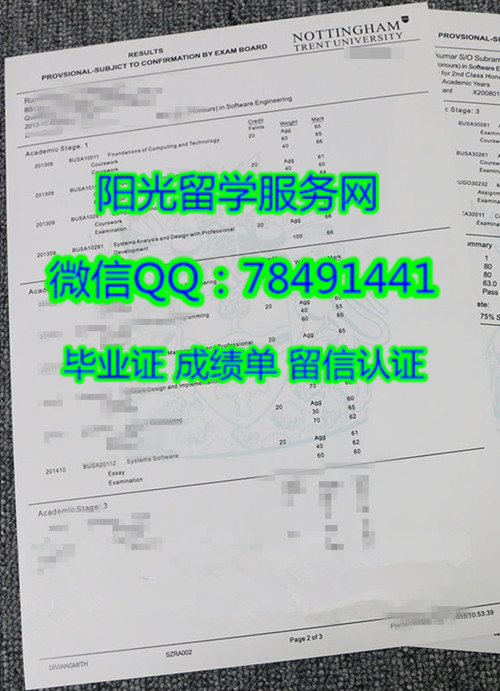 诺丁汉特伦特大学成绩单展示Nottingham Trent University Diploma