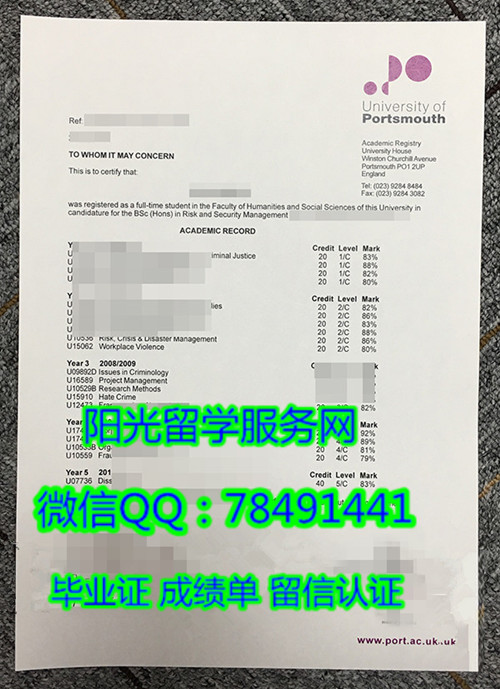 朴茨茅斯大学成绩单展示University of Portsmouth Diploma