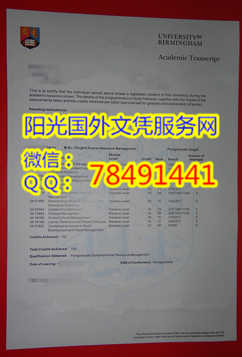 英国伯明翰大学成绩单展示University of Birmingham Diploma