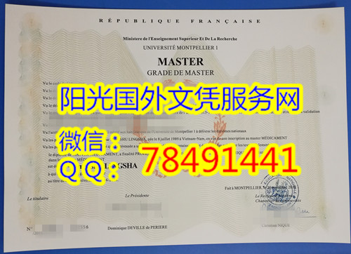 Université de Montpellier 1 Diploma法国蒙波利埃第一大学毕业证书案例